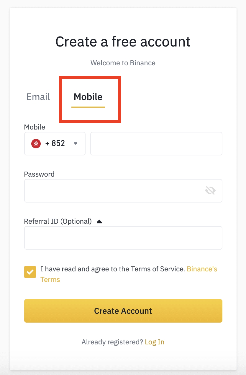 How to Register on Binance with Mobile Number