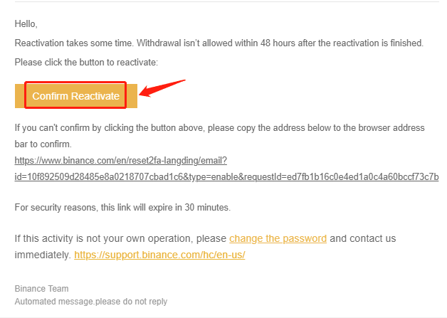 Once you submit your data, our system will send you an automatic confirmation email. Please click 【Confirm Reactivate】 to proceed further.