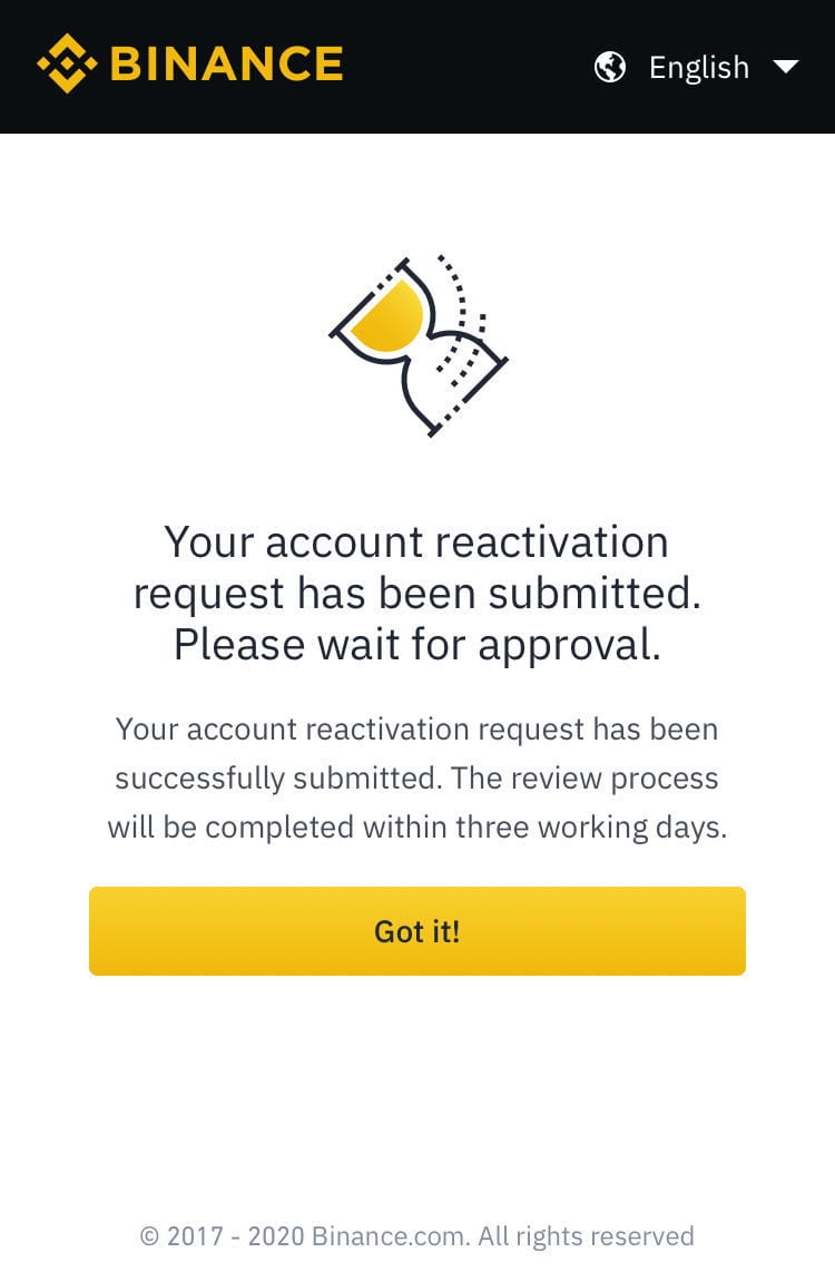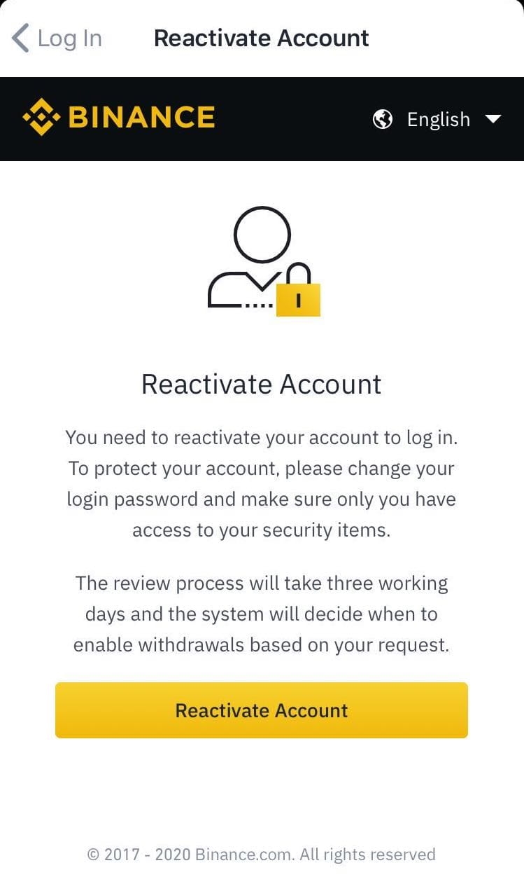 2. Please read the reminder carefully, and click on [Reactivate Account] to proceed further. 3. You will need to pass security verification:
