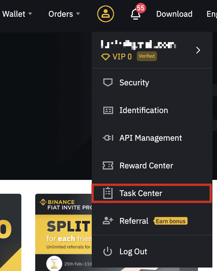 Once you are eligible for a reward, you must mark the task as complete in the Task Center. You can find the Task Center by hovering over the profile icon on the top right hand side of the Binance homepage
