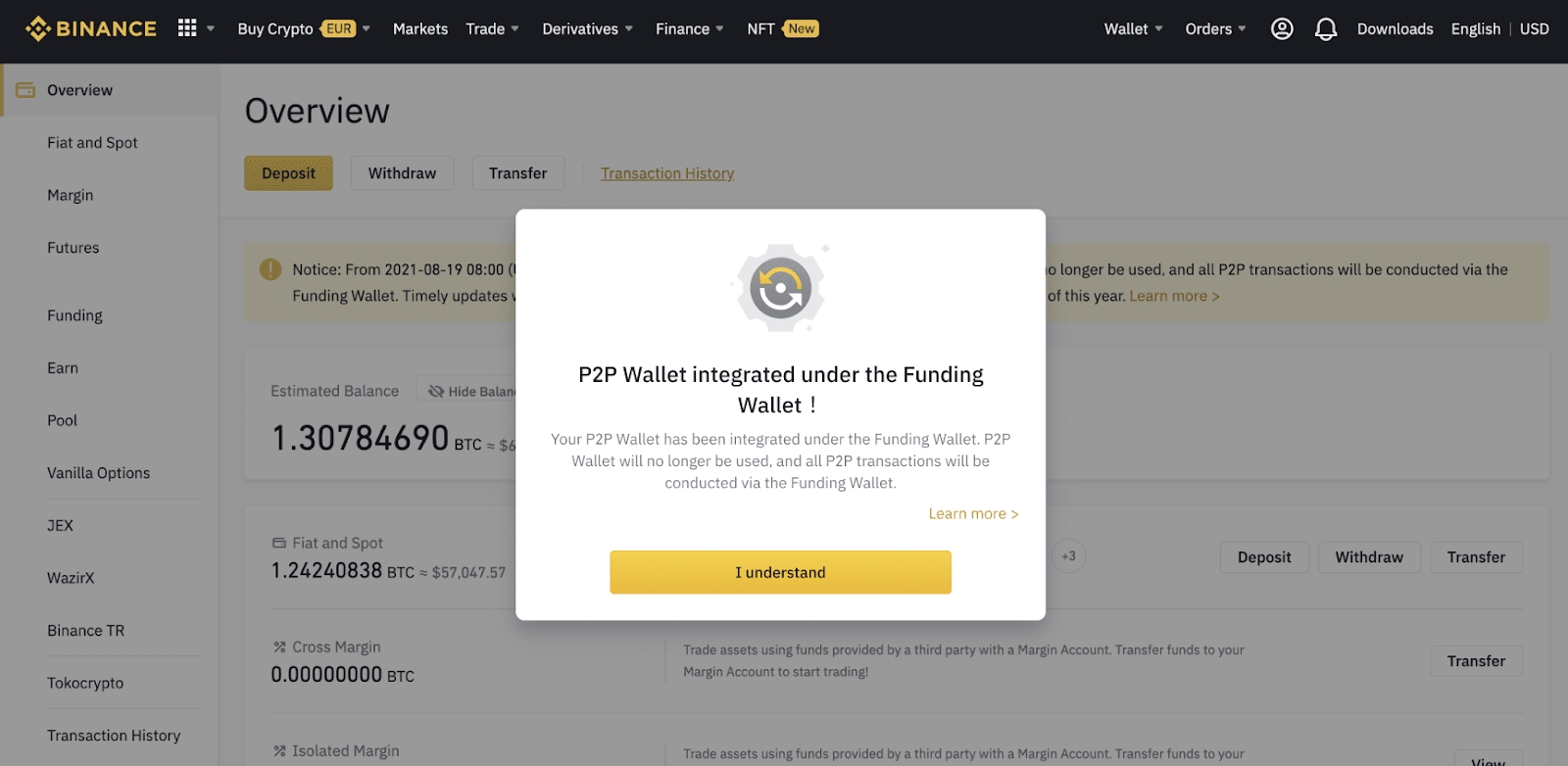 You will see a pop-up message regarding your P2P Wallet to Funding Wallet migration;